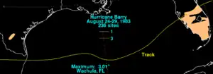 - National Hurricane Center (1983). "Preliminary Report: Hurricane Barry – Page 3 – Preliminary Best Track". National Hurricane Center. Retrieved February 14, 2009.