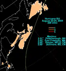 - Staff Writer (August 23, 2009). "Bill marches into Atlantic Canada". The Globe and Mail. Archived from the original on August 26, 2009. Retrieved August 23, 2009.