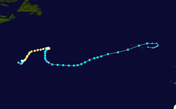 Hurricane Bonnie was a long-lived storm in the 1992 Atlantic hurricane season. It was the third tropical or subtropical storm and second hurricane of the 1992 season.[1] Bonnie formed at high latitudes in the central Atlantic on September 17. Devoid of any real steering currents for much of its lifespan, it was nearly stationary for over a week in the central Atlantic Ocean. On September 27, it began to slowly track east and northeast towards the Azores. Just before becoming extratropical, it affected the Azores on September 30, although no damage was reported.