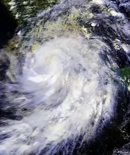 The tropical cyclone moved northwestward at 8 to 10 knots, and for the next two days its maximum sustained winds strengthened from 30 miles per hour (48 km/h) to 75 miles per hour (121 km/h). A ragged eye appeared on satellite imagery just before landfall on the afternoon of June 29, at a peak intensity of 90 miles per hour (140 km/h). The center crossed the south coast of Mexico midway between Lazaro Cardenas and Acapulco. Shortly after landfall, Boris weakened to a depression and turned southwestward in response to a building subtropical ridge to its north.[1] The system, thoroughly disrupted by the mountainous terrain of Mexico, dissipated on the July 1 after moving back over water just south of Puerta Vallarta.[1]