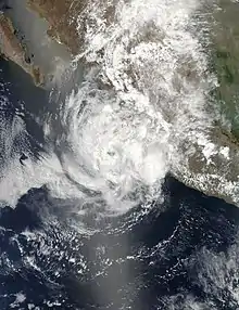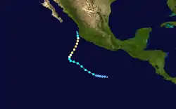 By early on May 24, the Government of Mexico issued a tropical storm watch from Punta San Telmo to La Fortuna.[13] Later that day, the watch was replaced by a warning and extended to Cabo Corrientes, while a hurricane watch was issued for the same area.[14] By 2100 UTC on May 24, the existing portions of the warnings between Cabo Corrientes and Manzanillo were upgraded to a hurricane warning, and another tropical storm watch was issued northward to San Blas.[15] In the event of evacuations, 11 schools in Colima and Jalisco were closed.[16] The port of Manzanillo closed due to the threat of rains.[17] Officials in Puerto Vallarta temporarily banned swimming in the ocean.[18] Hundreds of heavy vehicles were prepared in Jalisco to move debris.[16] Authorities opened a total of 898 shelters in Guerrero and around 200 shelters in Colima.[19][20]