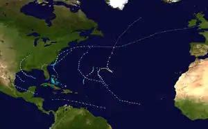 Hurricane Charley was the second hurricane to threaten the East Coast of the United States within a year's timeframe, after Hurricane Gloria of 1985.[1] The third tropical storm and second hurricane of the season, Charley formed as a subtropical low on August 13 along the Florida panhandle. After moving off the coast of South Carolina, the system transitioned into a tropical cyclone and intensified into a tropical storm on August 15. Charley later attained hurricane status before moving across eastern North Carolina. It gradually weakened over the north Atlantic Ocean before transitioning into an extratropical cyclone on August 20. Charley's remnants remained identifiable for over a week, until after crossing Ireland and Great Britain they dissipated on August 30.
