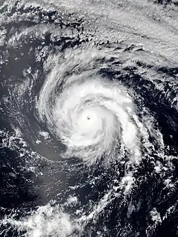 ![]() Hurricane Douglas at peak intensity in the open Pacific on July 23 | |