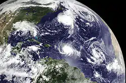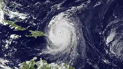 ![]() Hurricane Earl at peak intensity near the Bahamas on September 2 | |