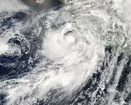 ![]() Hurricane Erick at peak intensity on July 6, with Tropical Depression Dalila to its west | |