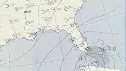 Advisories, along with coordination between the National Observatory at Havana and U.S. Weather Bureau, were credited for the reduced deaths in Cuba. Weather observations were also readily available from Cuban meteorological stations.[2] On October 25, the cyclone's hurricane-force winds were expected to remain off the Florida east coast, although gale-force winds were anticipated from the Florida Keys to Palm Beach, Florida. Accordingly, storm warnings were issued from Key West, Florida to Vero Beach, Florida.[7] Military aircraft were transported to safer locations, while watercraft were stored in harbors and rivers.[7] Hotels and resorts were boarded up on the barrier islands.[8] The Bahamas received warnings well in advance of the hurricane.[9] The hurricane turned quickly to the east, which reduced the threat to Bimini, Cat Cay, Grand Bahama, and the Abaco Islands.[10]