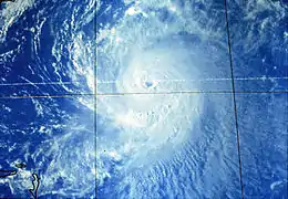 Hurricane Gladys was the farthest tropical cyclone from the United States to be observed by radar in the Atlantic basin since Hurricane Carla in 1961.[1] The seventh named storm and fifth hurricane of the 1975 Atlantic hurricane season, Gladys developed from a tropical wave while several hundred miles southwest of Cape Verde on September 22. Initially, the tropical depression failed to strengthen significantly, but due to warm sea surface temperatures and low wind shear, it became Tropical Storm Gladys by September 24. Despite entering a more unfavorable environment several hundred miles east of the northern Leeward Islands, Gladys became a Category 1 hurricane on the Saffir–Simpson hurricane wind scale on September 28. Shortly thereafter, the storm reentered an area favorable for strengthening. Eventually, a well-defined eye became visible on satellite imagery.