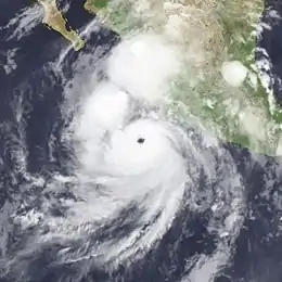 ![]() Hurricane Lidia near peak intensity south of Mexico on September 11 | |