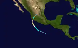 The last major hurricane, and hurricane of its season, Winifred existed in October 1992. It formed southeast of Acapulco on October 6 as the twenty-fourth east Pacific tropical cyclone of its season, and recurved as it strengthened. It peaked as a Category 3 hurricane on the Saffir-Simpson Hurricane Scale. It made landfall southeast of Manzanillo, Colima and dissipated inland.