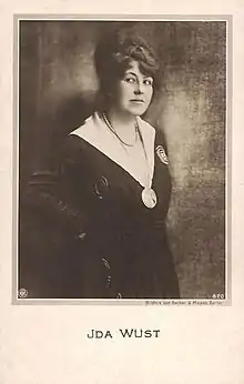 Little is known about Ida Wüst's early childhood. She discovered early the world of theater, and decided to make it her career. After attending secondary school in Frankfurt am Main, Wüst took acting lessons from Thessa Klinghammer and at the age of 16 received her first engagement at the StadtTheatre of Colmar, and further stage productions in Bromberg, and in 1904 performed extensively in Leipzig. In 1907 she became a member of the ensemble of the Lessing-Theater in Berlin, where she performed roles in Hosenrollen (roles in which women impersonate men in trousers), and comedies and became sought after actress.[2]