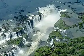 The park shares with Iguazú National Park in Argentina one of the world's largest waterfalls, extending over some 2,700 metres (8,900 ft). It is home to many rare and endangered species of flora and fauna, among them the giant otter and the giant anteater. The clouds of spray produced by the waterfall are conducive to the growth of lush vegetation.[3]