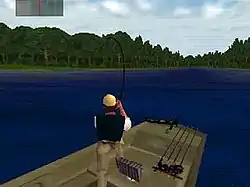 When beginning to fish, the player is given a boat and can drive around in any of the areas that they have unlocked, and then can choose their reel, lure, and even the type of casting they will perform as they send the line out into the water. Once the line goes below the water a split screen view appears showing the area directly surrounding the lure. A depth finder and map are provided telling the depths of the various portions of that area, which can be accessed from the menu, that also has an option of allowing the weather to be changed. Outside of the water can be seen various man made items such as buildings, docks, bridges, while in the water are weeds, lily pads, logs, brush, and tree stumps.[4] "Nintendo World", a Future Publishing magazine, described it as "about as much fun as getting a hook in the eye", adding "ultimately it's a one-paced and pretty unimaginative fishin' sim."[2]