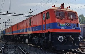 The history of WAG-11 begins in the early 2017 with the stated aim of the Indian Railways to minimize the dependence on diesel locomotives in Indian Railways after recommendation of Cabinet Committee on Economic Affairs (CCEA).[1][2] The committee recommended that Expansion of electrified routes across the country will also help in reducing energy cost.[3] Therefore a large number of WDG-4 diesel locomotives would become surplus after full electrification.[4] Thus Indian Railways decided to convert existing WDG-4 locomotives which needed midlife overhaul into the WAG-11 electric locomotive class.