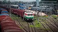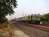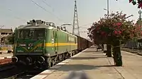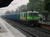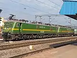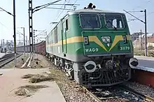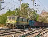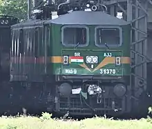 The Indian locomotive class WAG-9 is a class of 25 kV AC electric locomotives that was developed in 1995 by ABB Group (ABB) for Indian Railways. The model name stands for broad gauge (W), AC Current (A), Goods traffic (G), 9th generation (9) locomotive. They entered service in 1996. A total of 1996 WAG-9 have been built at Chittaranjan Locomotive Works (CLW), with more units being built at Banaras Locomotive Works (BLW) and Bharat Heavy Electricals Limited (BHEL). It was the most powerful freight locomotive of its fleet until the formal induction of the WAG-12.