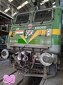 Newer WAG-9 units have "CLW Glorious 60 years" marked on their sides. Some WAG-9(x)s are fitted with a solid cowcatcher while others are fitted with grilled cowcatchers. Some have American style flasher lamps while others have Indian style flasher lamps. http://elocos.railnet.gov.in/Study_Material/TSD_3Ph.pdf.