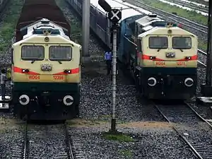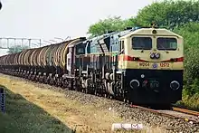 The EMD GT46MAC is a freight-hauling diesel-electric locomotive with AC electric transmission designed by General Motors Electro-Motive Diesel[1] in 1997–1998 for Indian Railways, where they are classed as WDG-4.[2] Thirteen were built by EMD as order #958647, and a further eight were exported in kit form and assembled in India. The class entered service in 1999.[3]