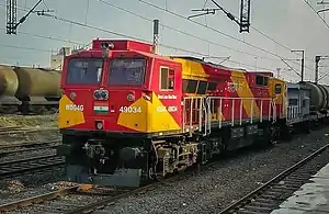 The first 50 locomotives of the class were built at GE Transportation's manufacturing plant in Erie, Pennsylvania and were shipped to India while the remaining 950 (including 300 WDG-6G class) are being locally manufactured with 70% local parts under the Make in India initiative.[6][7][8] The locomotives will be built and assembled at the Diesel Locomotive Factory, Marhowra in Bihar which is a joint venture between Indian Railways and General Electric with the former owning a 26% stake and the latter owning the remaining 74%.[9]