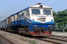 The Indian locomotive class WDP-3A is a class of diesel-electric locomotive that was developed in 1998 by Banaras Locomotive Works (BLW), Varanasi for Indian Railways. The model name stands for broad gauge (W), Diesel (D), Passengers traffic (P) locomotive with 3100 horsepower (3A). The WDP-3A is a later classification of earlier WDP-2. They entered service in 1998. A total of 44 WDP-3A units were built at Banaras Locomotive Works (BLW), Varanasi between 1998 and 2001.