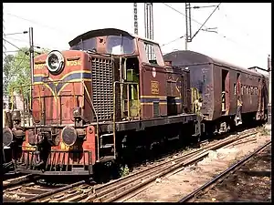 The class WDS-3 was a diesel-electric locomotive used by Indian Railways for shunting and doing departmental works. The model name stands for broad gauge (W), Diesel (D), Shunting (S) 3rd generation (3). The WDS-3 is used mostly in the Northern Railway Zone (NR). All these locomotives were withdrawn by the late 1990s.