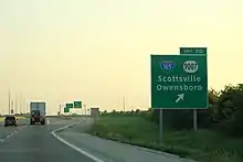 | Daviess | Owensboro | 70.184 | 112.950 | 70 | Northern terminus; US 60 exit 17; signed as exits 70A (east/north) & 70B (west/south); trumpet interchange. | |
