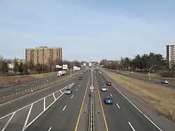 Interstate 291 (abbreviated I-291), also known as the Springfield Expressway,[3] is a 5.44-mile (8.75 km) connector highway in Massachusetts that links Interstate 91 in downtown Springfield with Interstate 90 (the Massachusetts Turnpike) in Chicopee. I-291 is roughly a northeast/southwest highway. It merges with I-91 at its southwestern terminus, via a flyover. The road meets the Mass Pike at its northeastern terminus. Getting onto the Pike from I-291 is straightforward, but getting from the Pike to I-291 requires a left turn at an at-grade traffic signal. I-291 travels directly through highly populated areas of Springfield, and passes under several overpasses. From its southwestern terminus to exit 5A, Interstate 291 is concurrent with U.S. Route 20.