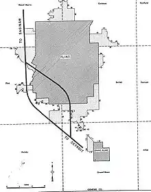 - Bureau of Public Roads (1955). "Flint" (Map). General Location of National System of Interstate Highways Including All Additional Routes at Urban Areas Designated in September 1955. Scale not given. Washington, DC: US Government Printing Office. p. 42. OCLC 4165975. Retrieved May 27, 2012 – via Wikimedia Commons.