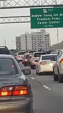Activists in the neighborhood of Morningside, along the SR 400 portion of I-485, were the first to fight the road, although opposition surfaced in a number of nearby surrounding neighborhoods. This is the most famous example of the Atlanta freeway revolts.[4] After I-485, and parts of SR 400 and SR 410, was canceled, a portion of the right-of-way of the canceled highway was used to build Freedom Parkway, now part of SR 10. SR 400 north of I-85 was constructed in the early 1990s as a toll road,[5] and the section south of I-285 was constructed in the mid-1980s and designated Interstate 675.[6][7]