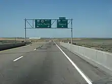 The interchange with US 91 in Chubbuck was later rebuilt in 2013 as the state's first diverging diamond interchange, which helped reduce the rate of collisions at the interchange.[6][32] The Idaho Transportation Department plans to rebuild the interchanges at the western and eastern termini of I-86 to meet modern standards and improve safety. Reconstruction of the western interchange at I-84 near Declo began in May 2018 and is scheduled to finish in late 2020, replacing the trumpet configuration with a modified "Y".[33][34] The eastern interchange at I-15 in Chubbuck is planned to rebuilt by 2023 with auxiliary lanes at a cost of $59 million.[35]