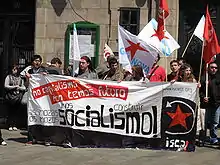 Isca! is the name of a Galician youth organization that promotes Galician independence, combined with anti-capitalist and feminist ideology. They are linked to the Galician Movement for Socialism, a socialist and pro-independence party that forms part of the Galician Nationalist Bloc (BNG).