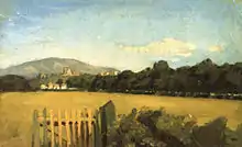 A hostile review published on 3 November 1862 in the journal Gazzetta del Popolo marks the first appearance in print of the term Macchiaioli.[4] The term carried several connotations: it mockingly implied that the artists' finished works were no more than sketches, and recalled the phrase "darsi alla macchia", meaning, idiomatically, to hide in the bushes or scrubland. The artists did, in fact, paint much of their work in these wild areas. This sense of the name also identified the artists with outlaws, reflecting the traditionalists' view that new school of artists was working outside the rules of art, according to the strict laws defining artistic expression at the time.