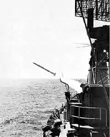 The propulsion system remained the same. The rest of the armament was radically altered: a RIM-2 Terrier missile launcher made Giuseppe Garibaldi the first missile cruiser in Europe. The previous artillery was replaced by four 135/45 mm guns in two twin turrets and eight Oto Melara 76/62mm Type MMI AA guns. Electronics included several radars and fire control systems.