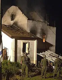 During the takeover, eight Israelis were injured and the house burst into flames.[1][4] Ambulances carrying the wounded were delayed by roadblocks and pelted with stones.[5]