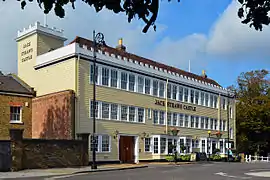 The current building was designed by the architect Raymond Erith and dates to 1964;[2] Speaking at Erith's memorial service in 1974, the poet laureate Sir John Betjeman called the building "true Middlesex" and "a delight".[7] The pub closed in 2002, and was then converted to a number of luxury apartments and gymnasium.[7] As of 2020 the building is empty.[8]