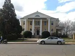Jacob S. Mauney Memorial Library and Teacher's Home, also known as the Mauney Memorial Library and Dr. Jacob George Van Buren Hord House, is a historic home and library located at Kings Mountain, Cleveland County, North Carolina. It was built in 1923 as a private dwelling and donated to the city of Kings Mountain in 1947. From 1947 to about 1962–1963, the building also functioned as a teacherage for the Kings Mountain school system. It is a two-story, five bay, yellow-brick Southern Colonial Revival-style house. The front facade features a two-story, pedimented tetrastyle portico with stucco-finished masonry columns. It has a one-story rear block added in 1987–1988 and the Harris Children's Wing, a two-level addition of 1999–2000.[2]