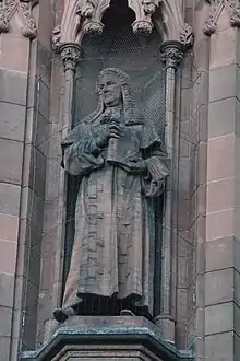 On 29 November 1695 Stair, who had been for some time in failing health, died at his house in Edinburgh, aged 76, and was buried in the church of St Giles. His Edinburgh house, the former palace of Mary of Guise on the Castlehill was purchased by John Wightman of Mauldslie, a future Lord Provost of Edinburgh. It was redeveloped in 1843 to build New College.[2]