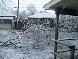 The January 2007 North American ice storm was a severe ice storm that affected a large swath of North America from the Rio Grande Valley to New England and southeastern Canada, starting on January 11 and lasting until January 16. It was followed by a second wave in the Southern United States from Texas to the Carolinas from January 16 through January 18, and a third one that hit the southern Plains and mid-Atlantic states as well as Newfoundland and Labrador from January 19 to January 24. It resulted in at least 74 deaths across 12 U.S. states and three Canadian provinces, and caused hundreds of thousands of residents across the U.S. and Canada to lose electric power.[2][3]