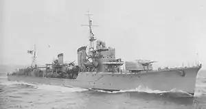 Harusame (春雨, Spring Rain)[2] was the sixth of ten Shiratsuyu-class destroyers, and was built for the Imperial Japanese Navy under the "Circle One" Program (Maru Ichi Keikaku).[3] This vessel should not be confused with the earlier Russo-Japanese War-period Harusame-class torpedo boat destroyer with the same name.