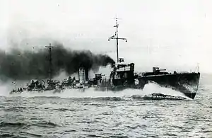Tachikaze (太刀風, Sword Wind)[1] was a Minekaze-class destroyer, built for the Imperial Japanese Navy immediately following World War I. Advanced for their time, these ships served as first-line destroyers through the 1930s, but were considered obsolescent by the start of the Pacific War.