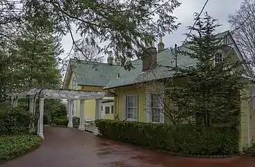 Cropsey married Maria Cooley in May 1847. He had met her during one of his visits to Greenwood Lake after 1843. Maria's father, Isaac P. Cooley, was a justice of the peace from 1837 to 1839 and became a judge over the New Jersey Court of Common Pleas in 1840.[7] Cooley then became a member of New Jersey State House of Assembly from 1860 to 1861.[8] Cooley offered to build Cropsey a studio on his estate but the offer was declined. In 1869 Cropsey built a 29-room Gothic Revival mansion and studio in Warwick, New York that he named Aladdin. As well as living in New York City, he spent part of his time in Warwick until the mansion was sold in 1884.
