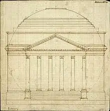 In colonial Virginia during the 18th century there were no schools of architecture, so Jefferson learned the trade on his own from various books and by studying some of the various classical architectural designs of the day. As a self-taught architect and classicist, he was most heavily influenced by the Italian revivalist architect Andrea Palladio (1508–1580). His "bible" was Andrea Palladio's The Four Books of Architecture, which taught him the basic principles of classical design.[1][2] Jeffersonian architecture is therefore perhaps best described as "Palladian" in inspiration.[3]