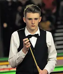 The first ranking event Walker could qualify for during the 2014–15 season was the International Championship thanks to a 6–4 win over Ken Doherty. Walker drew Martin Gould in the first round and made a century and two further breaks above 50 to level at 4–4 after being 4–1 down, but then lost two frames in a row to exit the tournament.[22] He eliminated Alan McManus 6–1 and Tom Ford 6–3 at the UK Championship and then led world number 11 Stuart Bingham 3–0, but went on to lose in a deciding frame.[23] Walker was knocked out of the first round of the Welsh Open and Indian Open 4–2 by Mark Joyce and 4–0 by Matthew Selt.[24] Before the start of the World Championship, Walker stated his desire to become the first player from Sheffield to play in the event, but he lost 10–6 to Stuart Carrington in the first qualifying round.[23]