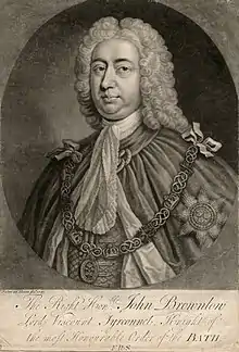 John Brownlow, 1st Viscount Tyrconnel (16 November 1690 – 27 February 1754), KB, known as Sir John Brownlow, 5th Baronet, from 1701 to 1718, of Belton House near Grantham in Lincolnshire, was a British politician who sat in the House of Commons from 1713 to 1741.