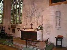 At the Battle of Tewkesbury on 4 May 1471, he commanded the middle of the Lancastrian line. However, the Lancastrians suffered a crushing defeat, and Wenlock died on the battlefield. He was allegedly killed by his own commander, the Duke of Somerset, who blamed Wenlock's indecisiveness for the defeat.[6] The Duke of Somerset had led the right flank of the Lancastrian line forward, and expected Wenlock to support him, but Wenlock held back (some suggest deliberately) and the Duke's men were slaughtered. After the Duke's flank retreated he either summoned Wenlock or rode to him, and supposedly killed him with a single blow to the head.[7] Some sources suggest that Wenlock was committed to the cause, but that Somerset had bungled the planned manoeuvre, coming out of the woods too early, and emerging in front of the enemy instead of behind, thereby preventing Wenlock's men from firing upon them.[3]