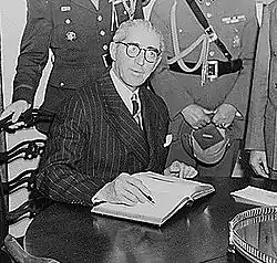Up to 1943, Chile and Argentina had declined to sever relations with the Axis powers, and the Chilean election was viewed by many as critical during World War II.[4] A bitter disagreement sprung up between the president and its supporting Democratic Alliance. Initially, Ríos' government was committed to neutrality during the war, but the left-wing parties of his coalition were in favor of an immediate and total rupture with the Axis as well as for the recognition of the USSR, which they saw as their contribution to the world-struggle against fascism. Diplomatic and especially economic pressure from the United States finally caused him to break off relations with the Axis Powers on January 20, 1943; however, he only declared war on Germany and Italy, and while beginning to imprison Japanese nationals did not declare war on Japan until 1945. By doing so, he made Chile eligible for the Lend-Lease program, and obtained the necessary loans to help along the economic recovery, and in 1945, Chile belonged to the victorious nations and had thus gained the right to participate in the postwar international conferences.