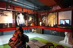 The museum collection consists of artifacts, photographs and information related to the incident. These include the casings of rounds fired by the People's Liberation Army in Tiananmen Square and a raincoat which was worn by a resident of Hong Kong who went to Beijing to support the Democracy Movement. The museum also contains T-shirts signed by the student leaders including Wang Dan and Chai Ling. The museum provided a multi-media area, heritage area, history area and a library.[2] A Goddess of Democracy statue, which at 6 feet 4 inches (1.93 m) in height symbolizes 4 June, was to have been displayed in the permanent museum.[14]
