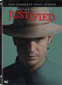 The sixth and final season of the American television drama series Justified premiered on January 20, 2015, on FX, and concluded on April 14, 2015, consisting of 13 episodes.[1] The series was developed by Graham Yost based on Elmore Leonard's novels Pronto and Riding the Rap and his short story "Fire in the Hole".[2] Its main character is Raylan Givens, a deputy U.S. Marshal. Timothy Olyphant portrays Givens, a tough federal lawman, enforcing his own brand of justice in his Kentucky hometown.[2] The series is set in the city of Lexington, Kentucky, and the hill country of eastern Kentucky, specifically in and around Harlan.[3] The sixth season was released on DVD and Blu-ray in region 1 on June 2, 2015.[4]