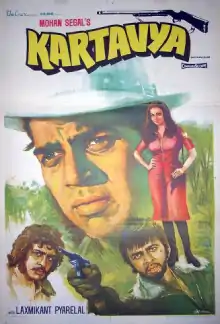 Kartavya is a 1979 Indian Hindi language action drama film directed by Mohan Sehgal. The music in the film is composed by Laxmikant Pyarelal. The film stars Rekha on the lookout for her father's killer, and has Dharmendra as a forest officer. The villain in chief is Utpal Dutt. Aruna Irani, Ranjeet, Nirupa Roy and Suresh Oberoi round off the cast. Vinod Mehra played a partially negative character, the role of Dharmendra's younger brother, kidnapped in his early age.The film is remake of the hit 1973 Kannada film Gandhada Gudi, starring Dr. Rajkumar and Dr. Vishnuvardhan.[2]