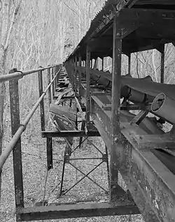 The mine was connected to the town by a single-track incline which lifted workers and equipment up a 1,000-foot (300 m) slope at a thirty-degree incline. Coal was moved along a similar double-track incline, which lowered coal to the processing plant and the coke ovens, with the cars or monitors moving in opposite directions and partially counterbalancing each other. Both inclines operated until 1962. Initial operations included 120 coking ovens, which were increased to 202 ovens during World War I. All of the beehive ovens closed in the 1930s, as they had become obsolete.[4]