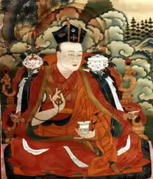 Khakhyap Dorjé, 15th Karmapa Lama (Tibetan: མཁའ་ཁྱབ་རྡོ་རྗེ ; 1871–1922 or 1870–1921)[1] was born in Sheikor village in Tsang, Tibet. It's said at birth he spoke the Chenrezig mantra, and at five he was able to read scriptures. He was recognized as the Karmapa reincarnation and enthroned at 6 by the ninth Kyabgon Drukchen.[2]