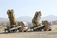 The Khordad 15 (Persian: پانزده خرداد) is an Iranian designed and built surface-to-air missile (SAM) system.[1][2] The system was unveiled to the public on 9 June 2019 in an address made by Iranian Defence Minister Amir Hatami in Tehran, Iran.[2][3] The system was developed by the Iran Aviation Industries Organization (IAIO). It shall have the capability to detect and intercept fighter jets, stealth targets, unmanned combat aerial vehicles (UCAV) and cruise missiles.[2] It operates in conjunction with Sayyad-3 missiles.[1][2] The surface-to-air missile system was developed in order to counter missiles and other aerial threats presented by the presence of extra-regional forces at military bases in countries around Iran. It was unveiled amid escalating tensions with the United States and Europe's failing attempts at upholding its commitments to the 2015 Iran nuclear deal.[4]